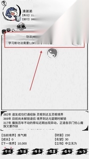 学习新功法需要积累1000点修为和50点财富,当满足这些条件后,就能解锁新的能力,从而提升修炼效率,助力境界突破。