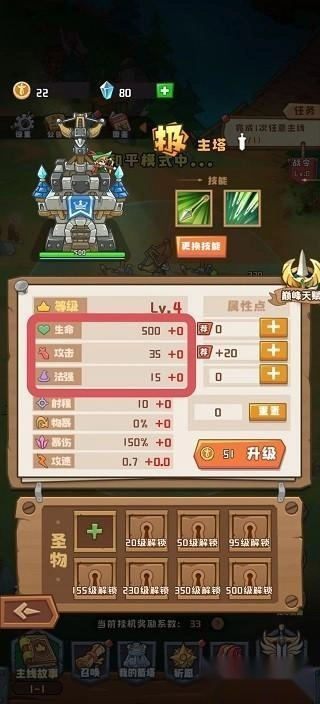 ①目前塔只有生命,攻击,法强三个属性可加点,物理塔主加攻击,法术塔主加法强,游戏中有红点推荐。其他属性主要由圣物提供。