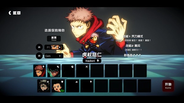 开始战斗,每个角色拥有3个技能和一个大招