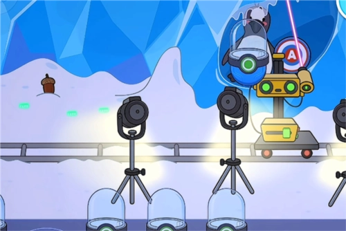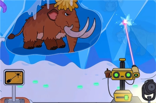 4、例如这里小编拖动激光将冰块融化,将可以看见长毛象以及小企鹅哦;