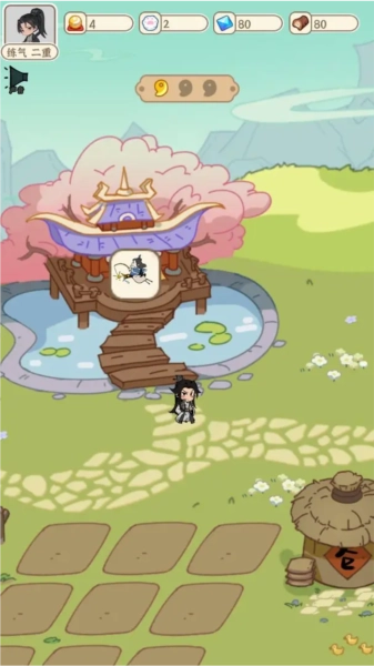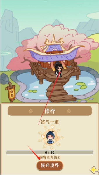 2、根据玩法点击人物,开启炼气,最后来提升境界