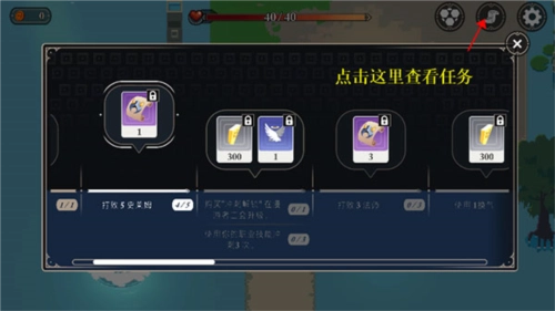 5、点击下图位置可以显示任务,你可以按照任务提示来开始你的冒险之旅。