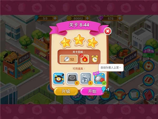 以8-44为例,这里可以用一个“上菜小助手”,帮助玩家减轻负担,发现东西没了赶快补做,上菜的事交给助手就可以了。