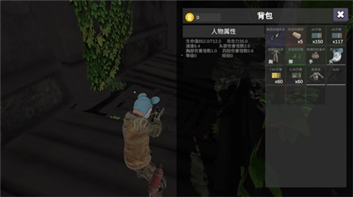 5、点击背包可以查看人物属性和你获得的道具;
