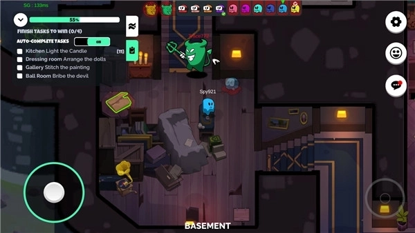 通过滑动轮盘操控角色,在庄园里自由探索并达成任务目标。