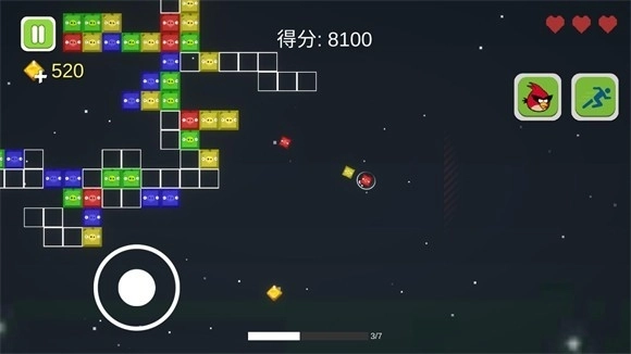 4、右上角显示血量,碰到方块扣血,需谨慎操作;