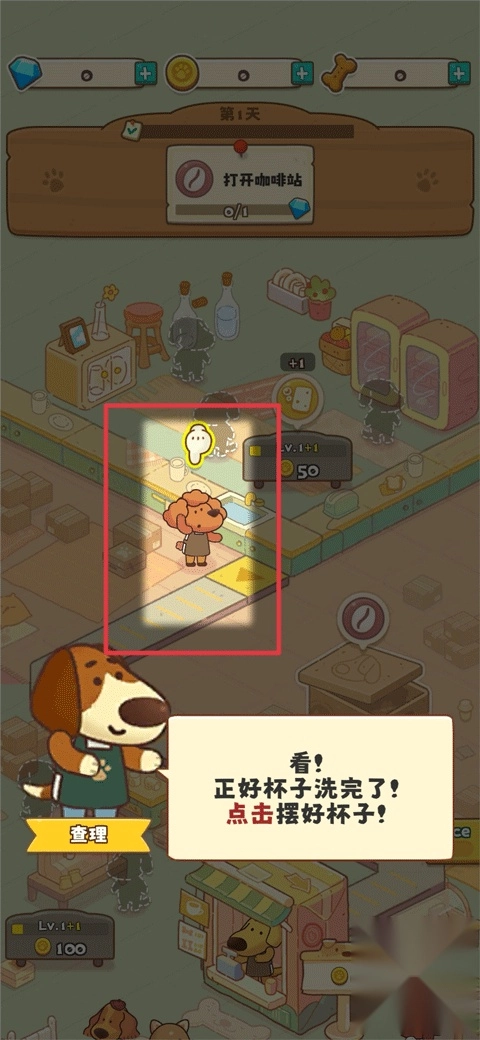 然后点击负责洗杯子的小狗,让他洗出干净的杯子