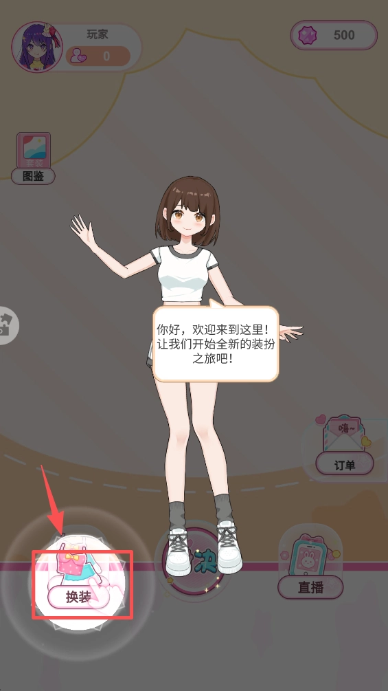 2、点击“换装”按钮,进入角色装扮模式,准备为角色搭配服装。