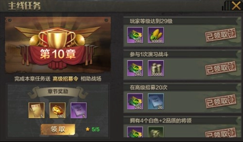 玩家在游戏前期要尽量把主线和支线任务都做完来升级,要是条件允许的话,也可以用银元买粮食之类的道具来加速任务进度。这么做不仅能快速提升等级,还能解锁所有功能,同时拿到丰厚的奖励,这对后期发展来说非常关键,能让你比别人领先一步。