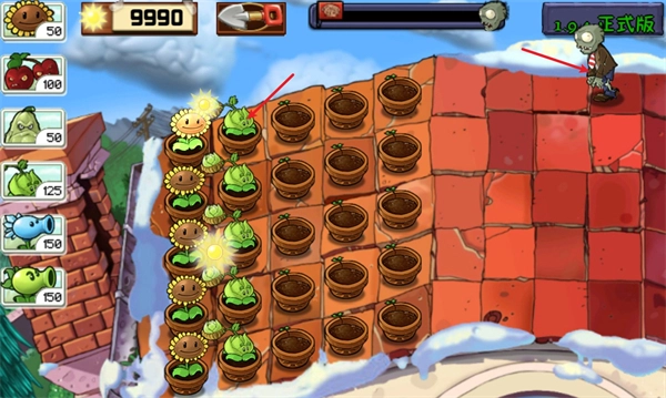 之后就能有充足的阳光来培育攻击型植物,一旦有僵尸出现,这些植物就会自动发起攻击。