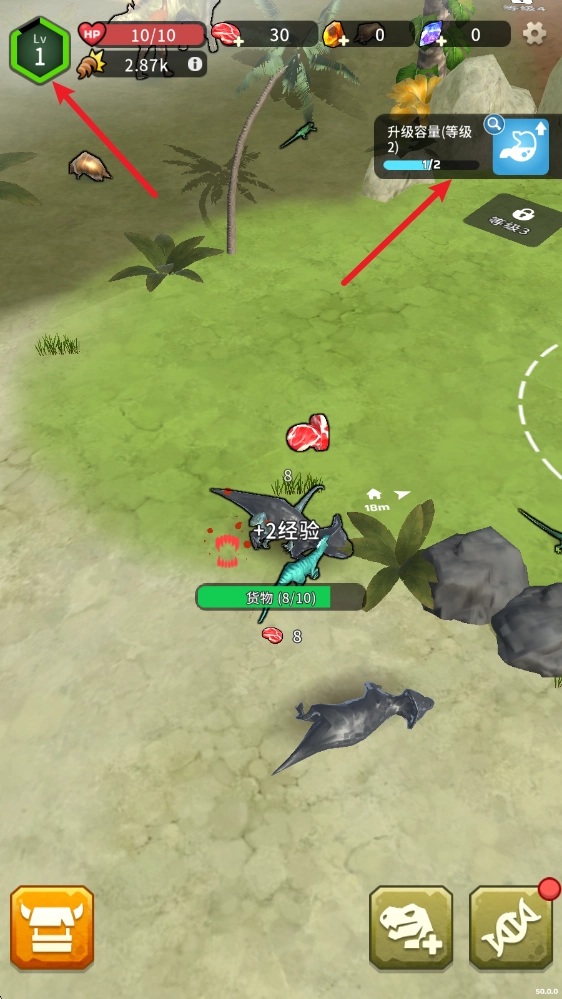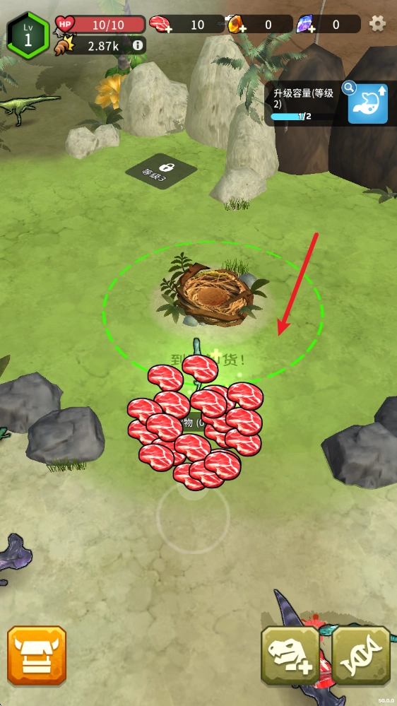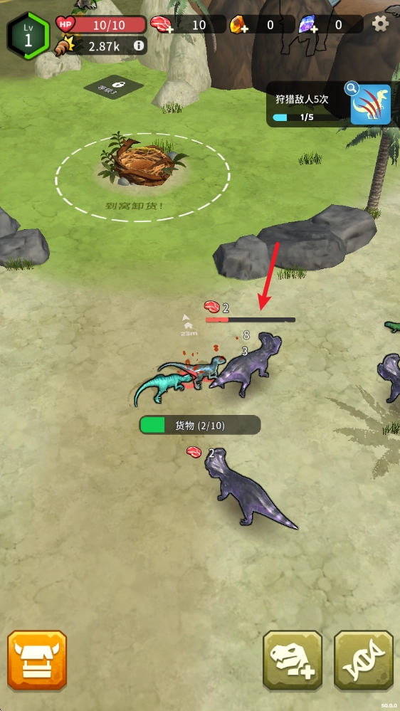 当恐龙的承载量达到上限时,就得回到巢穴卸下货物,之后才能接着进行狩猎活动。