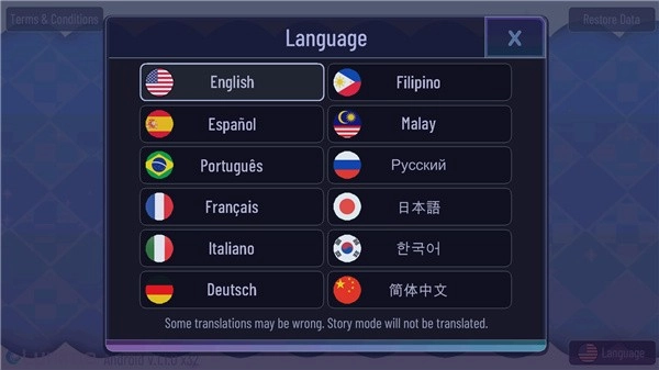 打开加查通用正版游戏,然后点击Language选项进入语言切换界面。