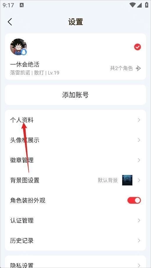 在设置页面选择个人资料。