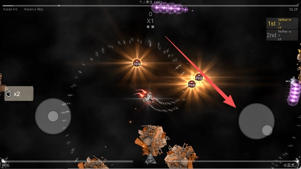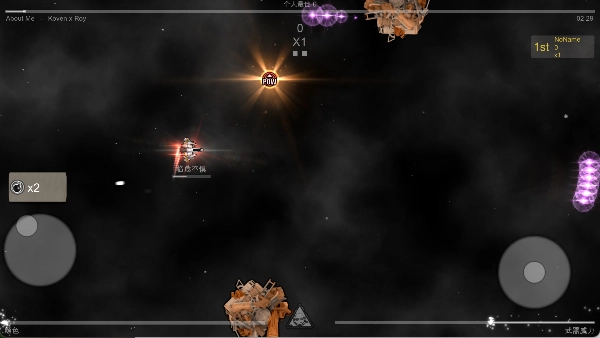 左边虚拟摇杆操作飞船移动
