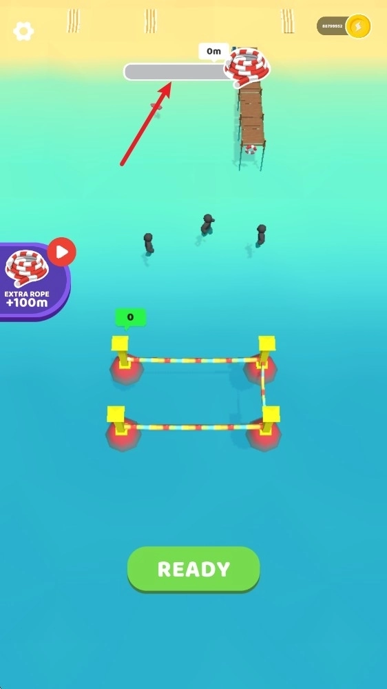 上方会显示剩余的绳索长度,你需要利用有限的绳索来搭建防护设施。