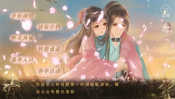 接下来我们可以点击右上角的菜单功能,然后选择存储档案、读取档案、环境设置、好感羁绊、鲜花商城等多个功能。