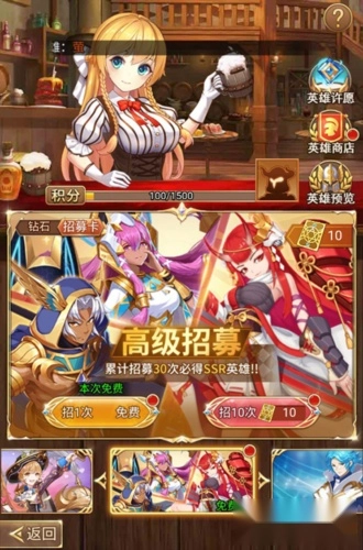 2、获得招募券后玩家就可以进行英雄招募,获取大量英雄。