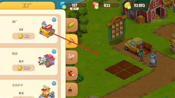 点击屏幕左下角的购物车图标,进入商店页面查看能够建造的工厂种类。