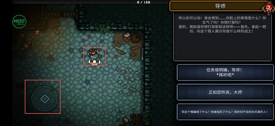 你可以通过屏幕左下角的虚拟摇杆来控制角色移动,然后前往导师所在的地方并和他进行对话。