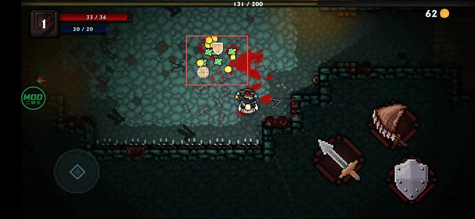 被击败的敌人会掉落金币和装备道具,只要操控角色靠近就能自动拾取这些物品。
