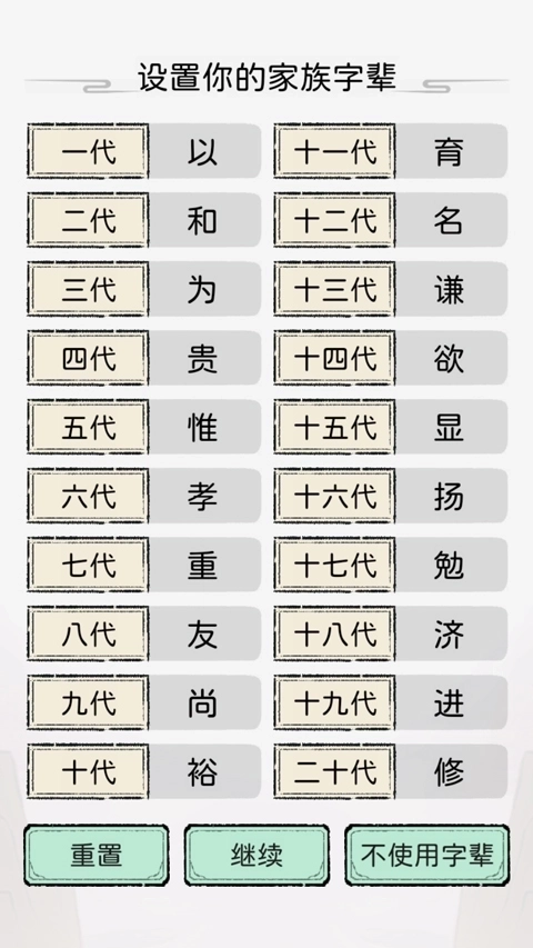 选择家族的字辈,可以延续到二十代。
