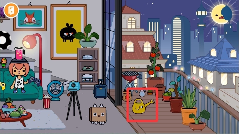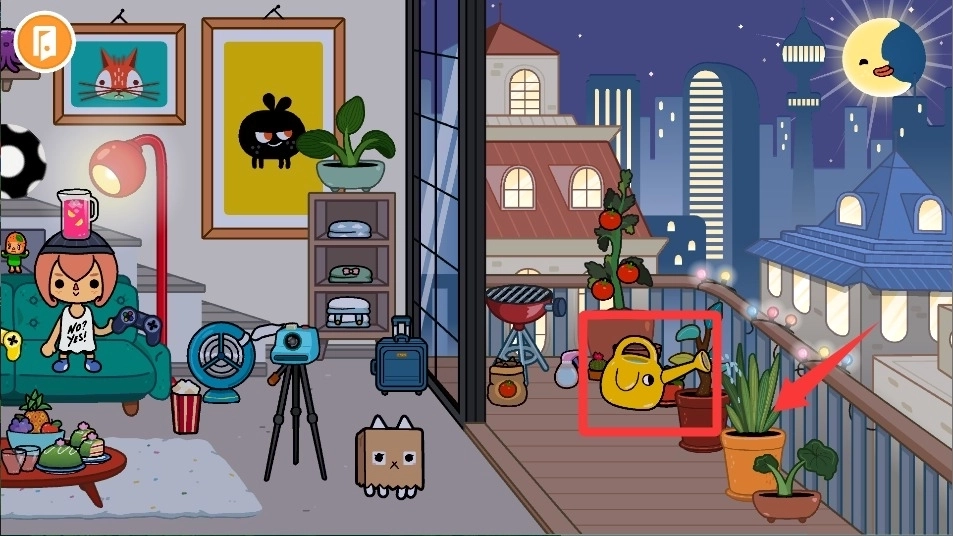 看到花园里那些枯萎的花,先去工具台挑选一把水壶,点击一下就能把它拿起来,然后走到花的旁边,再点击一下就能完成浇水了。