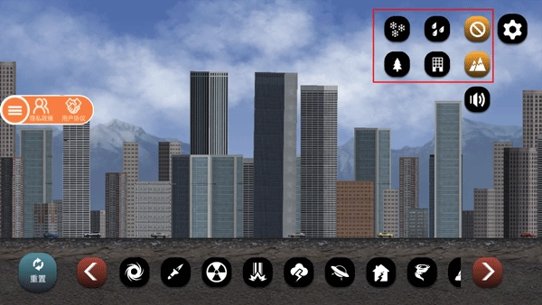 灾害管理系统:底部工具栏整合了火山喷发、地震波、飓风生成等二十余种灾害指令,借助触控操作就能即时改变城市形态。