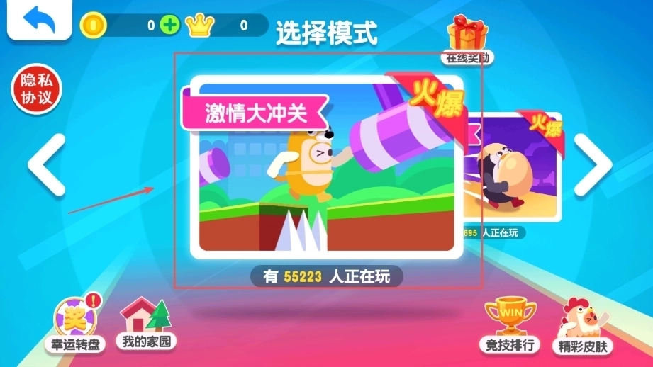 接着选择自己心仪的模式,比如踢皮球、猜水果、障碍赛之类的,匹配到其他玩家后,操控糖豆人去挑战这些充满趣味的关卡。
