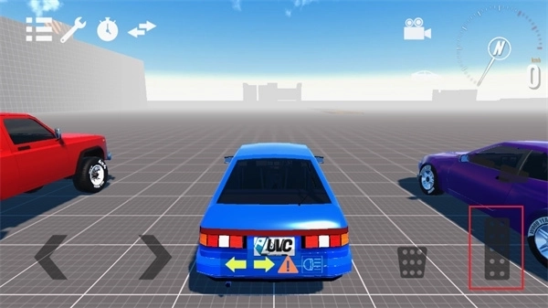 玩家会顺利进入驾驶场景,在这个场景里,需要点击右下角红色框内的按钮来让汽车加速。