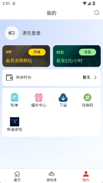 口袋云游戏的界面设计十分简洁,提供VIP会员计费与按时长计费两种游玩模式。平台会实时更新当下最新、最热门的游戏资源,要是用户找不到心仪的游戏,还能提交添加申请,整体服务考虑得相当周全。