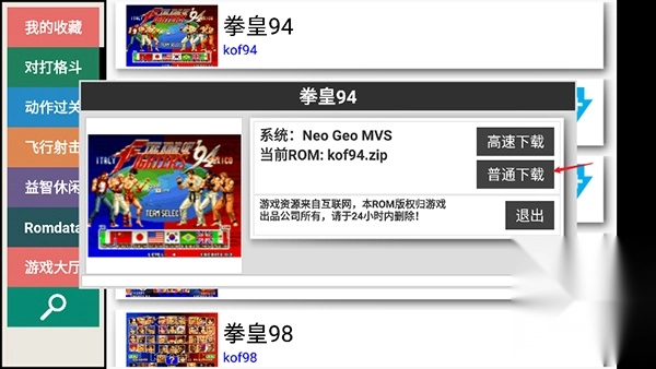 启动kawaks街机模拟器手机版后,界面呈现出对打格斗、动作过关、飞行射击、益智休闲等多种游戏类型。