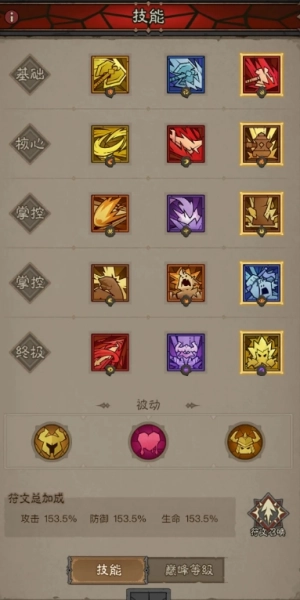 技能分为基础、核心、掌控、掌控、终极被动。
