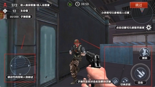 通过屏幕左侧的虚拟摇杆来操控角色移动,右侧的按钮则负责瞄准、射击以及道具使用,这样能保证在激烈的战斗过程中做出迅速反应。