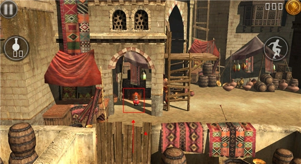 若想让角色爬上货架、阳台这类高处,只需把角色移动到目标位置的正下方,接着向上滑动屏幕,角色就会自动完成攀爬动作。