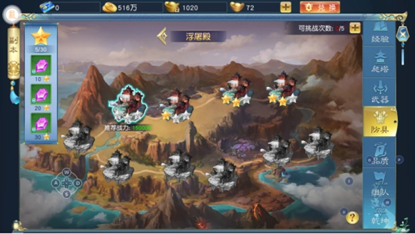 每天仅能通关一次,重复挑战不会消耗次数;通关后可花费一定绑定元宝进行扫荡,每层都能获得大量品质石,这些石头可用于提升装备品质。