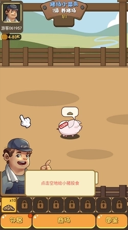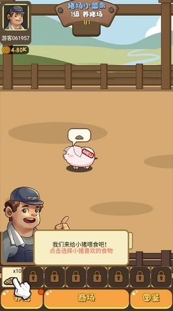 玩家开始给猪仔喂食,提供刚购买的猪饲料。