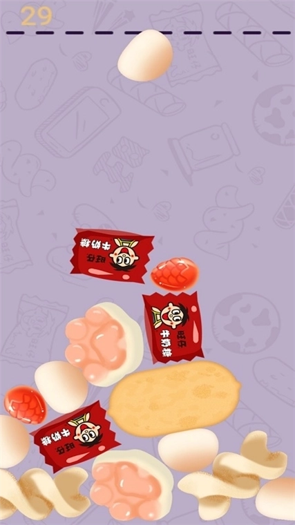 一旦中间区域的零食堆积得过高,就很容易造成游戏失败,所以得合理规划零食的摆放位置。