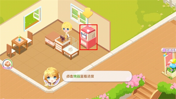 1、在本站完成安装并进入游戏后,玩家首先需要点击烤箱上的泡泡,以此来启动蛋糕的制作流程。
