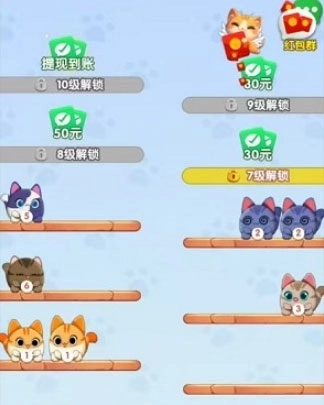 每次合成猫咪,都能得到比原来那只等级更高的新猫咪,同时还会获得相应的红包奖励。
