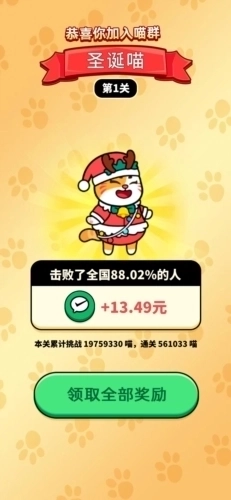每次解锁新猫咪都能拿到红包奖励,合成的猫咪等级越高,奖励就越丰厚!