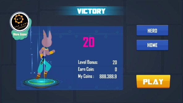 在火柴人勇士界面右上角的设置里,能对游戏内的音效和背景音乐进行关闭或开启操作;而在“hero”选项中,则可以切换不同的人物角色。