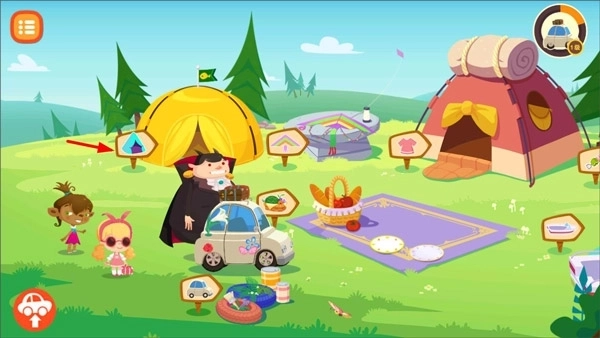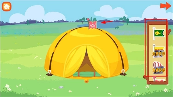 打开糖糖郊游记,进入游戏后,点击右侧的帐篷。