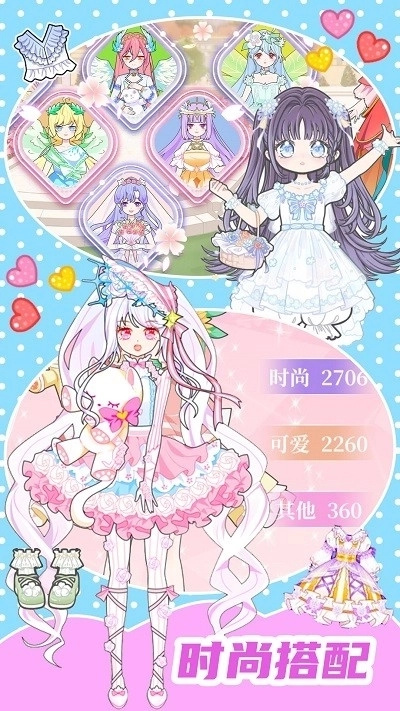 自由搭配服饰饰品:这里有海量的服饰和饰品可供你随心组合,轻松打造出梦幻般的造型,充分满足你个性化的换装需求。