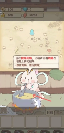 完成新手教程后,进入制药界面,将药草拖曳至药锅之中。