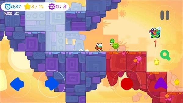 《凯奇大冒险》是一款兼具趣味性与挑战性的休闲益智闯关游戏。游戏采用可爱的卡通画风,主角凯奇是一位围着彩色围巾的小精灵。一天,凯奇在观看电视新闻时,得知自己的家园遭到了怪物入侵,便毫不犹豫地开启了拯救家园与伙伴的冒险之旅。玩家将操控凯奇,在奇幻世界里收集星星、击败怪物,完成一连串紧张刺激的任务。
