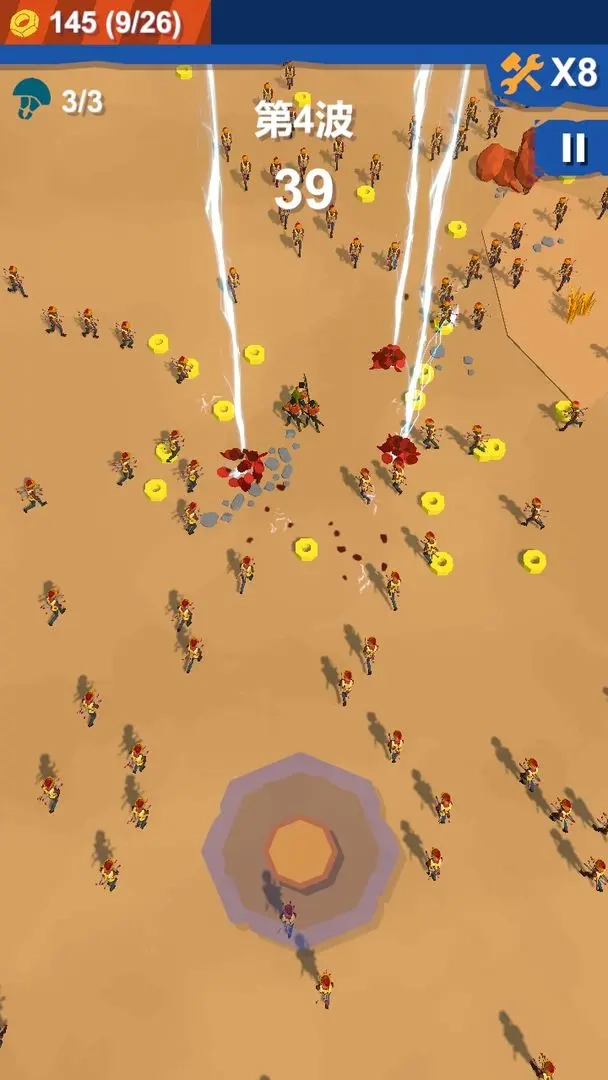进入战斗后,前期要尽量保持静止状态,借助技能的最大效果来攻击敌人。需要留意的是,从第13波起,远程敌人会参与战斗,这时灵活躲避就成了生存的关键所在。