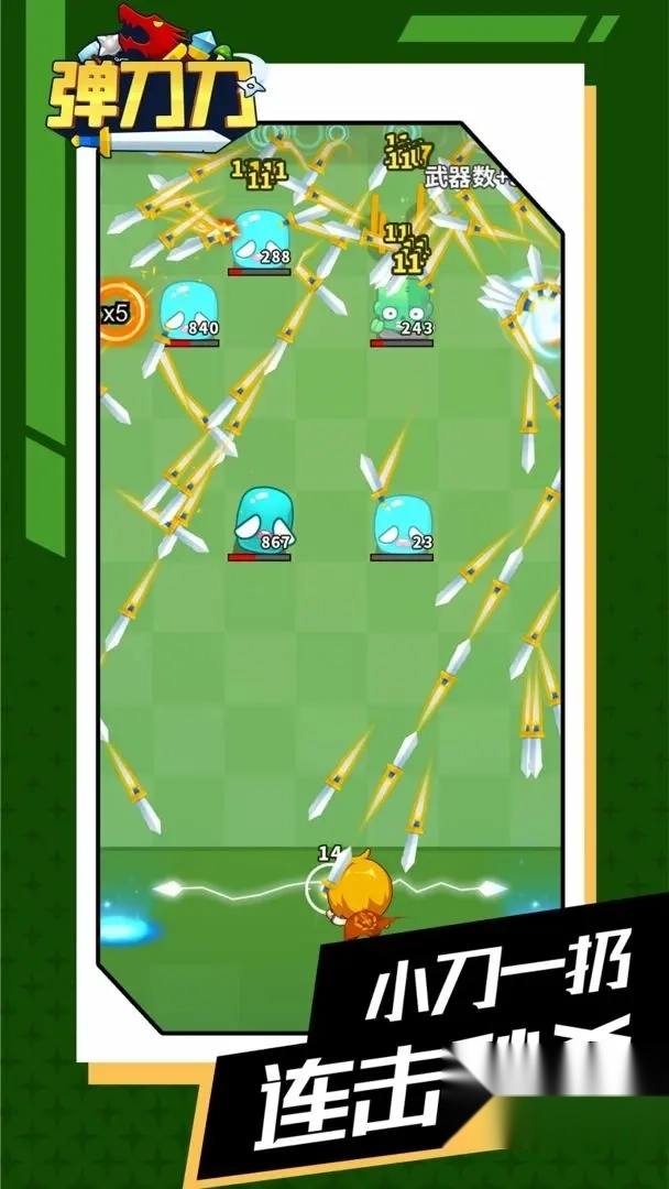 弹刀刀是一款超解压的休闲小游戏,Q萌飞刀在怪物群中“咻咻”弹射,清脆的金属碰撞声让人欲罢不能,玩起来特别上瘾。从火焰匕首到彩虹手里剑,每把武器都有专属特效;参与段位赛还能解锁电磁炮这类隐藏装备呢!滑动屏幕就能控制方向,飞刀会自动串连怪物,关卡从可爱小怪到强力BOSS,越打越畅快。操作简单容易上手,武器升级后刀阵会更密集,排行榜争夺战还能秀出你的操作,快来试试吧!