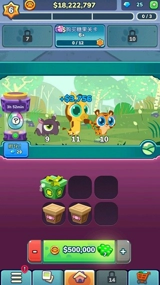 这也是小编最喜欢的部分,将两种相同的糖果合并在一起就能升级糖果啦,之后将高级的糖果喂食给老虎就能赚取更多的金币。