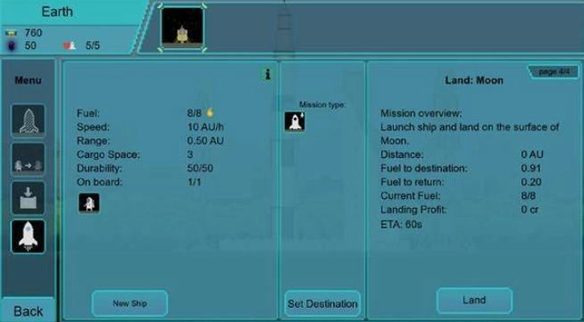 选好火箭类型后,点击land按钮就能发射火箭去探索宇宙啦。