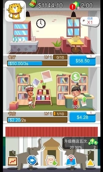 游戏中,玩家将经营自己的商场,从一楼开始,慢慢的解锁,建立自己庞大的商场。